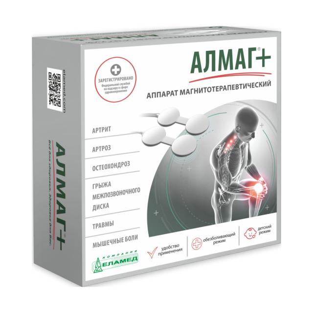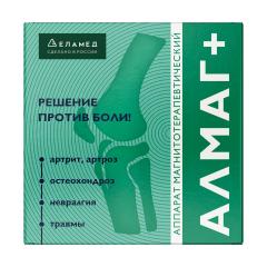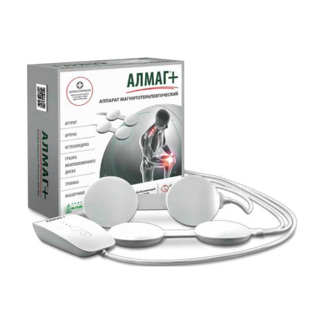 Новый физиотерапевтический аппарат на основе импульсного магнитного поля, АЛМАГ+ предоставляет все возможности современных медицинских достижений в лечении заболеваний опорно-двигательного аппарата. Также АЛМАГ+ помогает в решении трех основных задач терапии суставов: