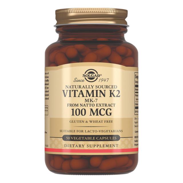 «Натуральный витамин К2 (менахинон 7) 100 мкг» рекомендуется в качестве биологически активной добавки к пище - дополнительного источника витамина К2, содержащей кальций. «Натуральный витамин К2 (менахинон 7) 100 мкг» от Солгар – это активная форма витамина К2 в виде менахинона с высоким уровнем биодоступности в оптимальной дозировке 100 мкг для восполнения суточной потребности организма. Витамин К2 — жирорастворимый витамин, необходимый организму для синтеза белков. Витамин К2 играет важную роль в обмене веществ, в укреплении костей и соединительной ткани, в работе почек, участвует в усвоении кальция и обеспечивает взаимодействие кальция и витамина D. Витамин К2 необходим для функционирования мышц, кальцификации костей (способствует их формированию и восстановлению), для профилактики остеопороза.