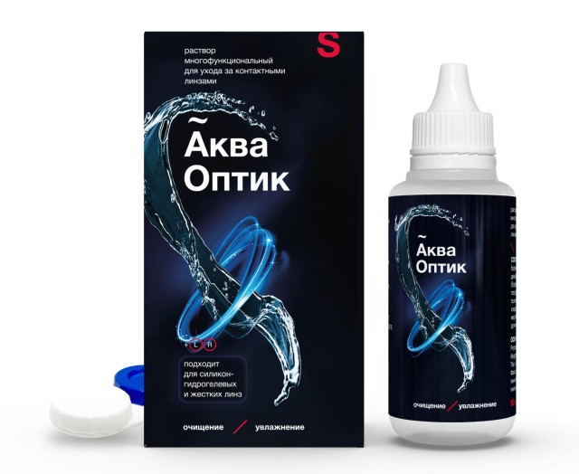 Раствор многофункциональный для ухода за контактными линзами АкваОптик представляет собой прозрачный или слегка опалесцирующий бесцветный раствор.