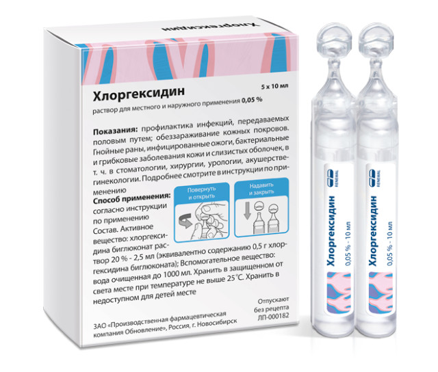 Раствор для местного и наружного применения 0,05 %.
