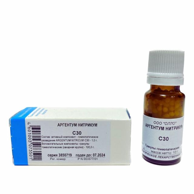 Аргентум Нитрикум С-30 гранулы 10г