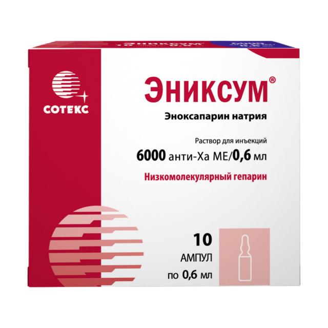 Эниксум раствор подкожно 6000Анти-Ха МЕ/0,6мл №10