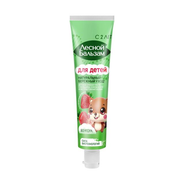 "Зубная паста детская с 2 лет Лесной Бальзам с кальцием, соком алоэ и экстрактом магнолии предназначена для деликатного ухода за полостью рта у малышей. И подходит для мальчиков и девочек.