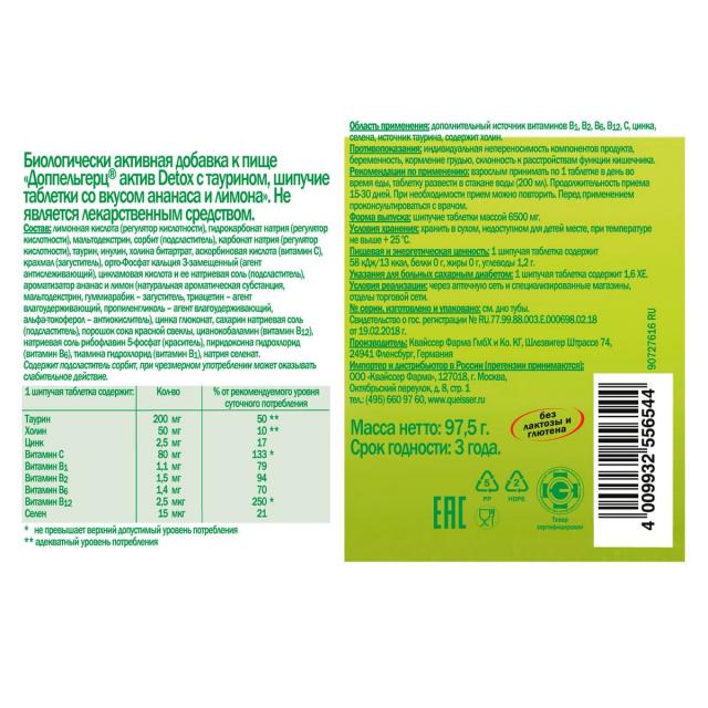 Доппельгерц актив Детокс с таурином таблетки шипучие ананас/лимон №15