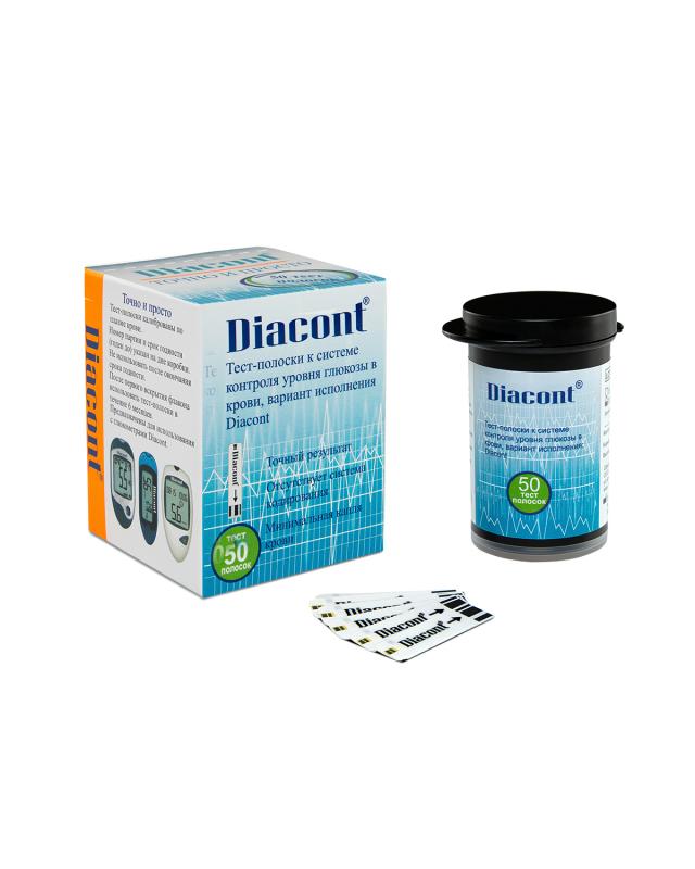 Одноразовые тест-полоски к глюкометрам Diacont (Diacont Стандарт, Diacont Компакт, Diacont "Voice"). При изготовлении тест-полосок используется методика послойного нанесения ферментативных слоев, что обеспечивает минимальную погрешность измерения. Тест-полоски не требуют кодирования и сами втягивают каплю крови.