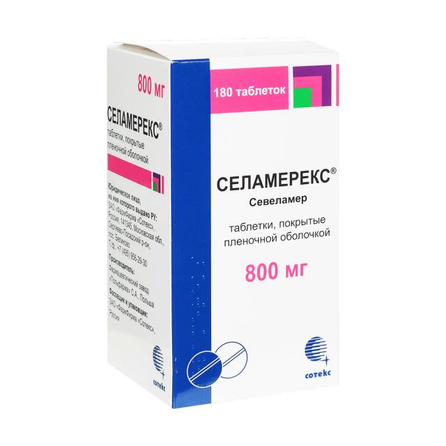 СЕЛАМЕРЕКС® показан при гиперфосфатемии у взрослых больных, находящихся на гемодиализе. СЕЛАМЕРЕКС® следует применять как часть комплексной терапии, направленной на предупреждение поражения костей в связи с заболеванием почек и включающей в себя добавки кальция, 1,25-гидроксивитамин D3 или один из его аналогов.