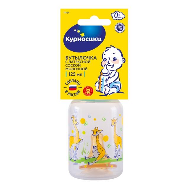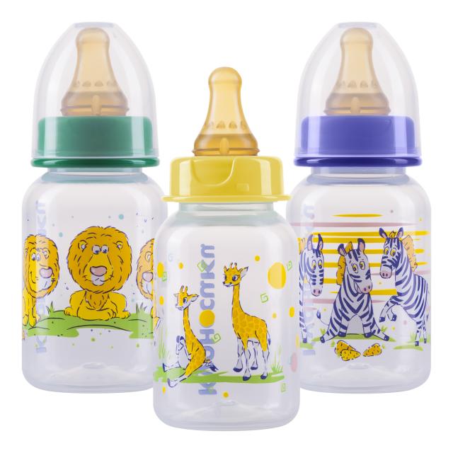 Бутылочка прямая с латексной соской без ручек "Африка" ассорти, 125 мл - 11144