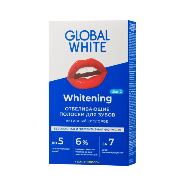 Глобал Вайт полоски д/зубов Активн.кислород отбелив. №7