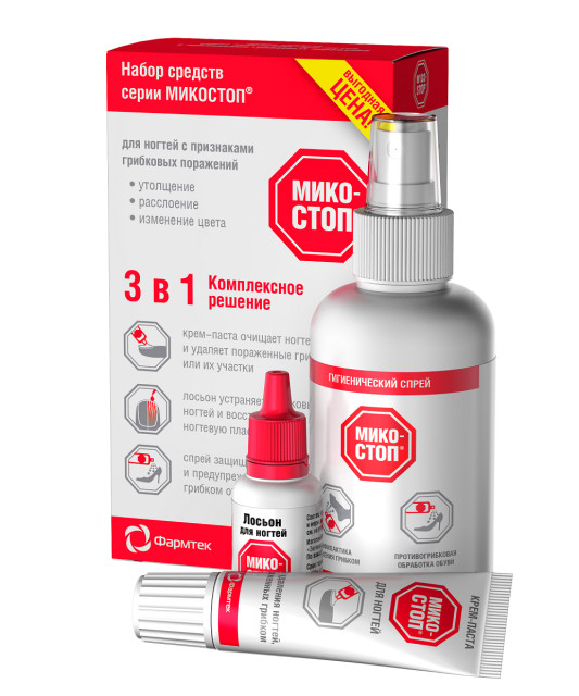 Микостоп набор крем-паста для ногтей 20мл+лосьон для ногтей 15мл+спрей 150мл