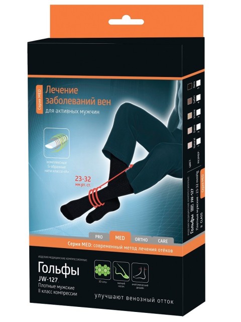 Гольфы компрессионные мужские B.Well rehab JW-127, II класс компрессии 22-32 мм рт. ст. предназначены для улучшения венозного оттока при заболевании вен у мужчин.