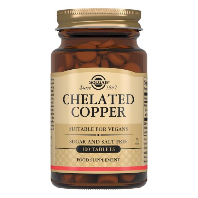 Таблетки «Хелат меди» рекомендуются в качестве биологически активной добавки к пище – дополнительного источника меди. Медь принимает участие в формировании эритроцитов и гемоглобина, участвует в транспорте железа, нормализует уровень гемоглобина, поддерживает здоровье нервной системы. Медь играет важную роль в липидном, белковом и углеводном обменах, участвует в активации меланоцитов, способствует сохранению цвета волос и предупреждению появления седины. Также медь участвует в выработке эластина и коллагена, поддерживая тонус и молодость кожи.