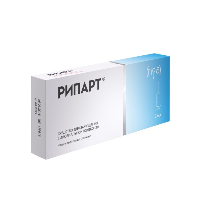 Средство для замещения синовиальной жидкости представляет собой стерильный, бесцветный и прозрачный вязкий раствор высокоочищенного натрия гиалуроната, получаемого по методу биоферментации. Изделие содержит натрия гиалуронат в концентрации 10 мг/мл (Средство для замещения синовиальной жидкости РИПАРТ®), 15 мг/мл (Средство для замещения синовиальной жидкости РИПАРТ® Форте) и 20 мг/мл (Средство для замещения синовиальной жидкости РИПАРТ® Лонг), натрия дигидрофосфат, динатрия гидрофосфат, натрия хлорид 0,9 % раствор для инфузий.