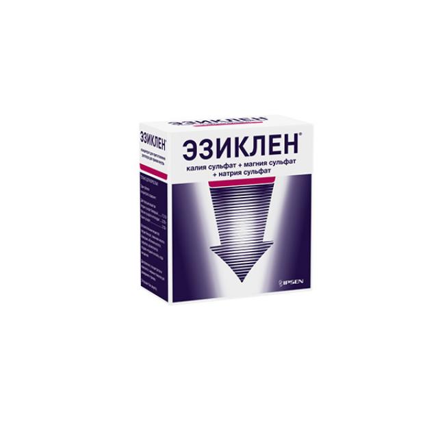 Эзиклен® является осмотическим слабительным средством. Механизм действия препарата в первую очередь обусловлен ограниченным по насыщаемости процессом активного транспорта сульфатов. При достижении порога насыщения всасывания сульфаты остаются в просвете кишечника. Осмотический эффект неабсорбированных сульфатов и прием внутрь значительного объема воды вызывает задержку воды в кишечнике, что обеспечивает слабительное действие, вызывая обильную водянистую диарею, и приводит к очищению кишечника.