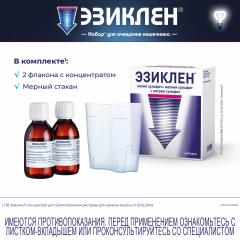 Препарат Эзиклен® предназначен для очищения толстой кишки у взрослых пациентов при подготовке к эндоскопическому и радиологическому исследованию толстой кишки или к хирургическим вмешательствам, требующим отсутствия содержимого в толстой кишке.