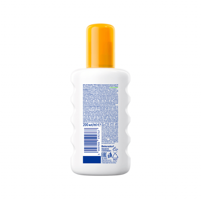 Детский солнцезащитный спрей NIVEA SUN мгновенно защищает от солнечных ожогов и снижает риск аллергии, вызванной солнцем, благодаря непарфюмированной формуле для ухода за нежной и чувствительной кожей детей.