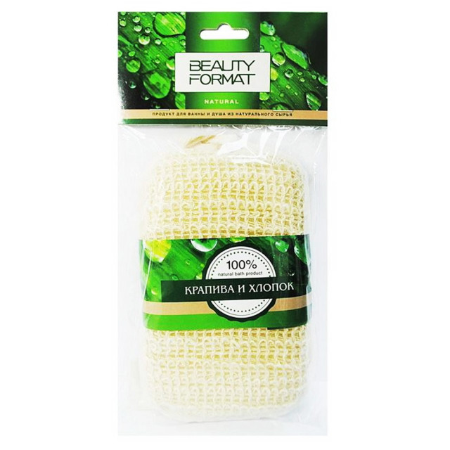 Бьюти Формат мочалка натур. крапива/хлопок брус арт.45464-8038