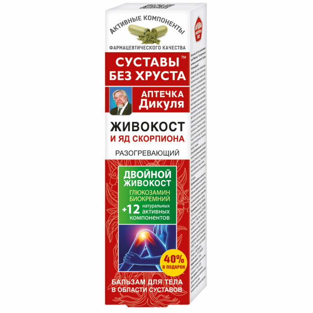 Яд скорпиона- жители Древнего Китая еще сотни лет назад высоко ценили лечебные свойства яда скорпиона. Яд скорпиона обладает выраженным противовоспалительным и обезболивающим эффектом. Бальзам на основе яда скорпиона способствует быстрому восстановлению при ревматизме, артрите, остеохондрозе, радикулите, воспалении седалищного нерва, ноющих болях в суставах. Бальзам активизирует механизмы регенерации хрящевой ткани и содействует комплексному оздоровлению опорно-двигательного аппарата.