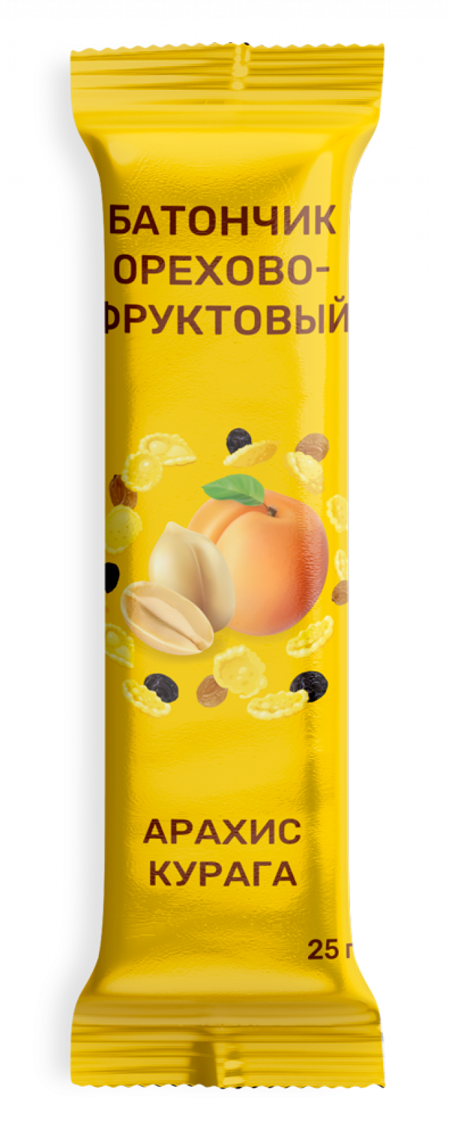 патока, арахис (цельный и дробленый), курага, кукурузные хлопья, изюм, цитрусовая клетчатка, аскорбиновая кислота. Возможно наличие незначительного количества семян кунжута, фундука, грецкого ореха, миндаля. Продукт может содержать фрагменты косточек.