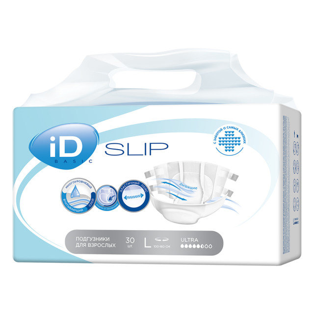 При создании линейки подгузников для взрослых iD SLIP Basiс удалось достичь оптимального баланса в сочетании материалов и особенностей конструкции подгузника, что делает его более экономичным. Многоуровневый впитывающий слой наделяет изделие высокой влагоёмкостью и хорошей влагоудерживающей способностью. Конструкция изделия предотвращает протекания и блокирует распространение неприятных запахов. Анатомическая форма, эластичный пояс и манжеты в области бёдер, а также многоразовые липучки-фиксаторы позволяют комфортно посадить подгузник на любом типе фигуры. Индикатор влагонасыщения помогает быстро понять, когда пора менять подгузник.