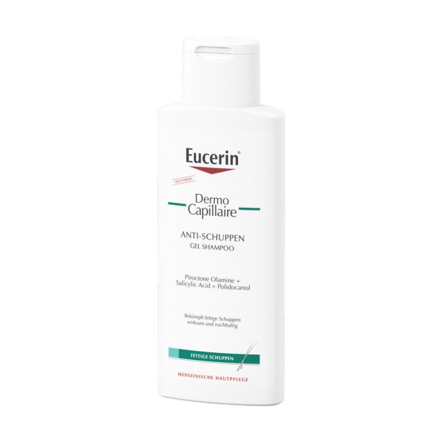 Eucerin DermoCapillaire шампунь против жирной перхоти создан для ухода за жирной кожей головы, подверженной появлению перхоти и себорейному дерматиту. Продукт бережно очищает кожу головы и волосы от перхоти, снижая и контролируя ее образование. Нежная формула эффективно успокаивает зудящую кожу.