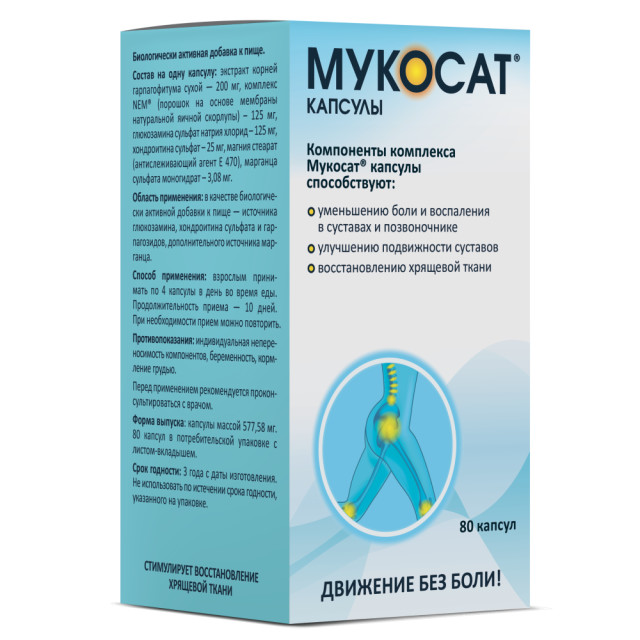 Мукосат® капсулы – оригинальная разработка, содержит важнейшие компоненты, необходимые для восстановления и поддержания здоровья суставов.