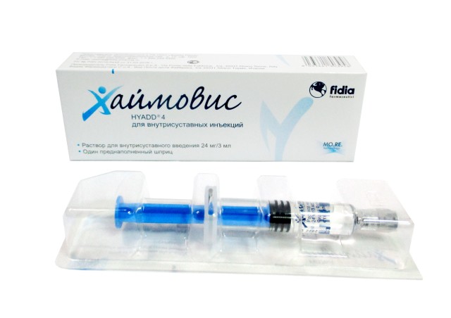 Медицинское изделие Хаймовис - это стерильный, апирогенный, вязкоэластичный раствор натриевой соли гиалуроновой кислоты бактериального происхождения (гиалуронат натрия) для внутрисуставных введений (24 мг/3 мл) поставляется в 3 мл одноразовых стеклянных шприцах.