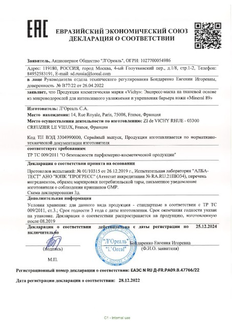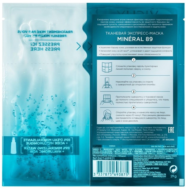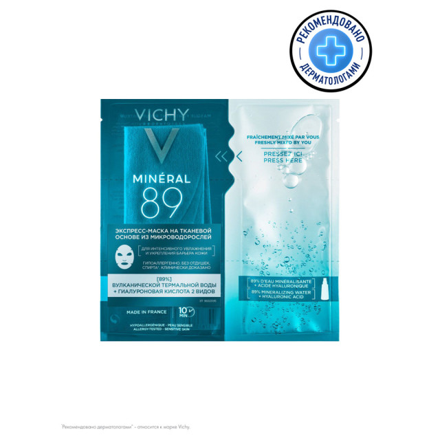 Экспресс-маска Vichy Mineral 89 на тканевой основе из микроводорослей для интенсивного увлажнения и укрепления барьера кожи