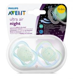 Авент пустышка Ультра Эйр ночная с футляром для стерилизации для мальчиков 0-6мес. №2 SCF376/11