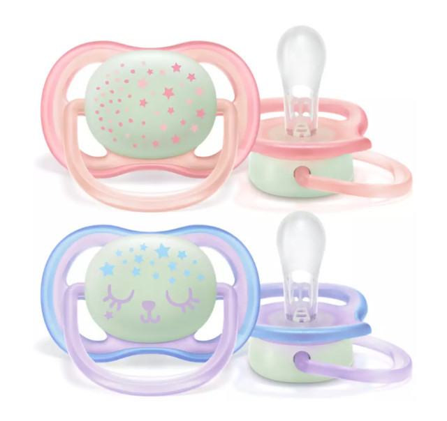 Авент пустышка Ультра Эйр ночная с футляром для девочек 0-6мес. №2 SCF376/12