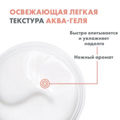 С первого взгляда - Плотная текстура. А при первом контакте - Освежающее прикосновение: гель мгновенно тает при соприкосновении с кожей, превращаясь в воду, и сразу впитывается при нанесении на кожу, даря ей комфорт. Кожа увлажнена надолго и постепенно восстанавливает свою свежесть день за днем.