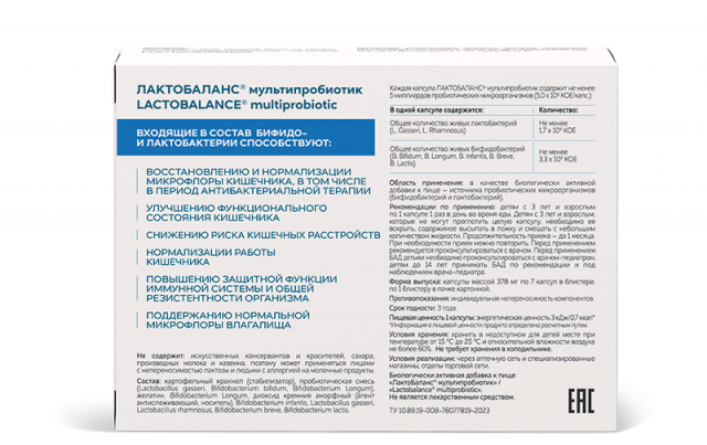 Каждая капсула ЛАКТОБАЛАНС® мультипробиотик содержит не менее