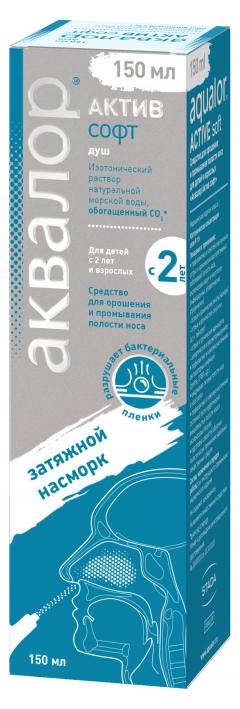Средство для орошения и промывания полости носа для детей и взрослых «Аквалор® Актив софт мини» 50 мл. Средство для орошения и промывания полости носа для детей и взрослых «Аквалор® Актив софт» 150 мл. Медицинское изделие в индивидуальной упаковке (баллоне) помещено в потребительскую упаковку (картонную пачку) с инструкцией по применению.