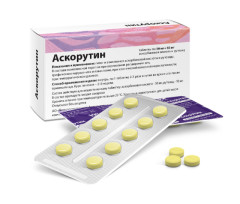 Действующие вещества: Аскорбиновая кислота – 50,0 мг Рутозида тригидрат – 54,4 мг (в пересчете на рутозид (рутин)) – 50,0 мг