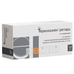 Быстро и полно всасывается при любых путях введения. Действие алимемазина начина-ется через 15-20 минут после введения. Максимальная концентрация (Сmax) алимемазина и площадь под фармакокинетической кривой (AUC) для препарата Тералиджен® ретард ли-нейно зависят от принятой дозы. Время достижения максимальной концентрации алиме-мазина (Tmax) для препарата Тералиджен® ретард составляет 5-6 часов. Связь алимемазина с белками плазмы составляет 20-30 %. Метаболизируется в печени. Выводится почками – 70-80 % в виде метаболита (сульфоксида). Период полувыведения (Т1/2) алимемазина для препарата Тералиджен® ретард составляет 15-17 часов.