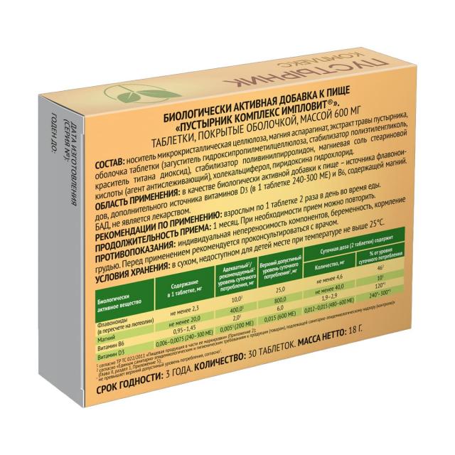 Пустырник Комплекс таблетки 600мг №30 Импловит