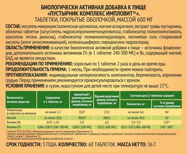 Пустырник Комплекс таблетки 600мг №60 Импловит