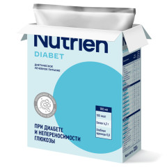 Nutrien® Diabet (Нутриэн Диабет) 320г- полноценный специализированный продукт для диетического лечебного (энтерального) питания при сахарном диабете 1 и 2 типа, с ограниченной переносимостью глюкозы и стрессиндуцированной гипергликемией, а также с различными заболеваниями, включая критические состояния. Может быть назначен пациентам с проблемами ЖКТ для нормализации микробиоты и моторики кишечника. Состав Nutrien® Diabet полностью сбалансирован: в него входят витамины, питательные вещества и микроэлементы, которые нужны для нормального самочувствия и жизнедеятельности. Подходит для энтерального питания с помощью зонда или гастростомы. Также из смеси легко приготовить напиток, который пациенты могут пить самостоятельно.