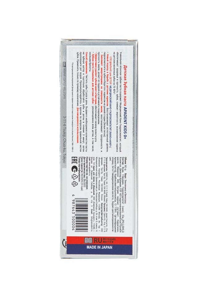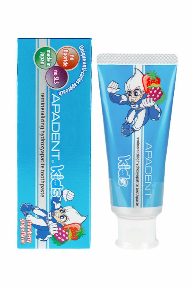 Японская лечебно-профилактическая зубная паста APADENT® Kids 0+ с Медицинским Нано-Гидроксиапатитом (NANO<mHAP>®) создана специально для детей с 0 лет и сочетает клинически доказанную эффективность, защиту от кариеса и безопасность. Без фтора. Замечательный землянично-виноградный вкус облегчает процесс приучения к чистке зубов - дети будут чистить зубы с удовольствием! Медицинский Нано-Гидроксиапатит® (NANO<mHAP>®) - минерал, из которого на 97% состоит зубная эмаль - благодаря нано-размеру частиц и высокой биосовместимости, глубоко реминерализует и укрепляет эмаль. В периоды прорезывания молочных зубов и сменного прикуса APADENT Kids является полноценным источником гидроксиапатита, способствуя более быстрому и качественному насыщению минералами эмали временных и постоянных зубов, предотвращает развитие кариеса на начальной стадии (белые пятна). Паста абсолютно безопасна при проглатывании и подходит для самых маленьких. Дизайн колпачка не предусматривает наличие фольги на горлышке тюбика.
