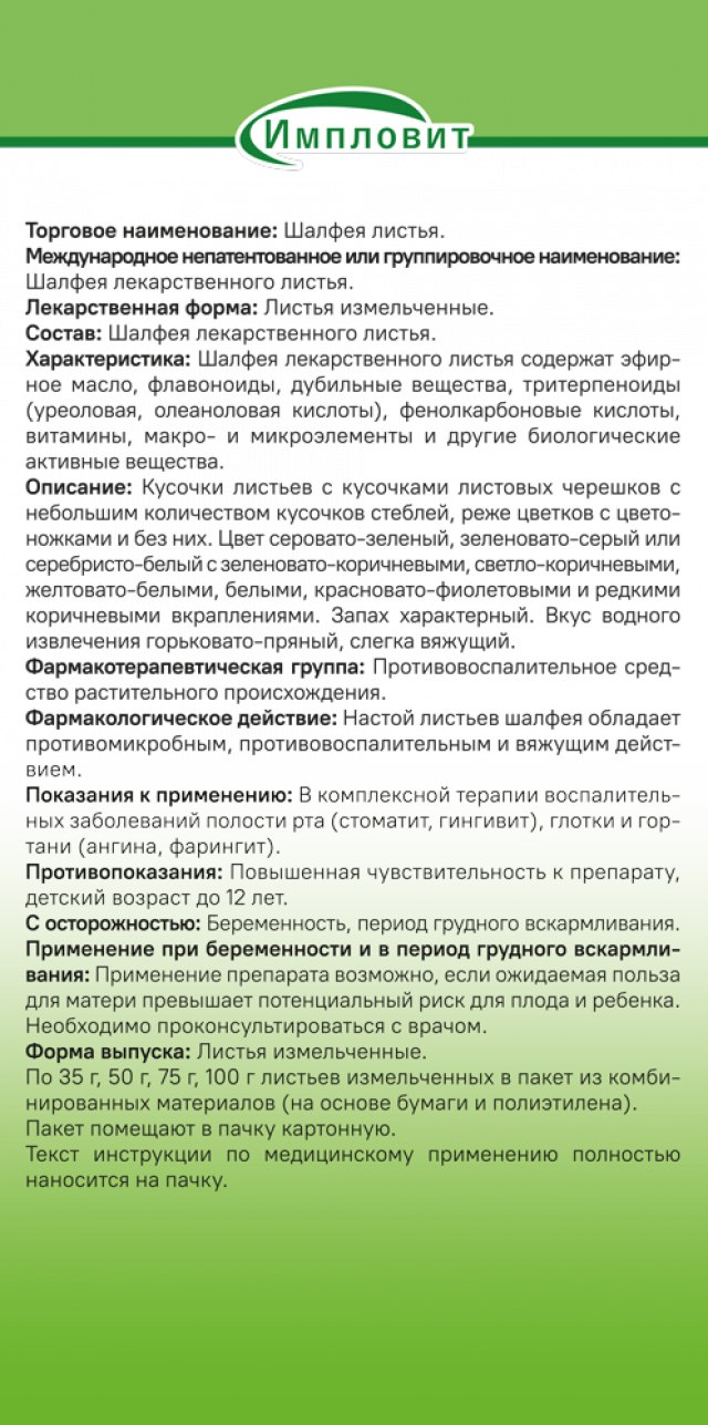 Шалфей листья 50г Импловит