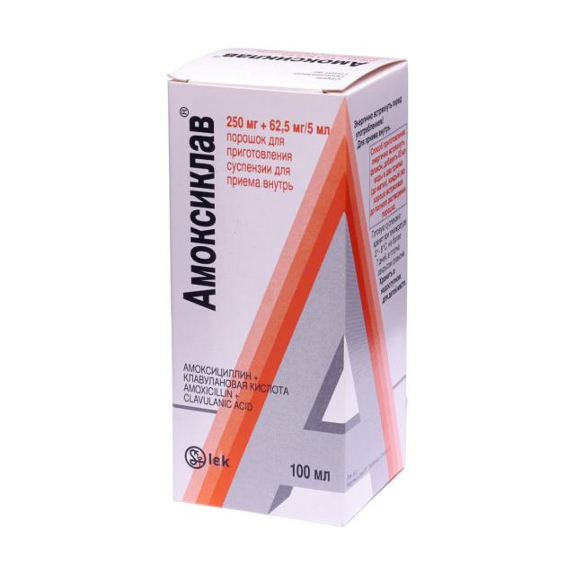 Амоксиклав порошок для приготовления суспензии внутрь 250мг+62,5мг/5мл 100мл
