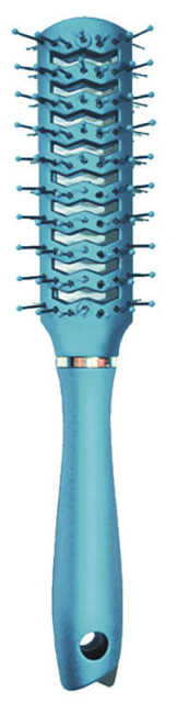 Щётка скелет двухсторонняя предназначена для быстрой укладки феном. Хорошо захватывает волосы, создаёт прикорневой объём и нужную форму на кончиках волос. Сквозные отверстия в корпусе щётки продуваются горячим воздухом фена и обеспечивают быстрое высыхание волос и форму укладки. Легкий пластиковый материал и удобная ручка комфортны в использовании. Легкий пластиковый материал и удобная ручка комфортны в использовании.