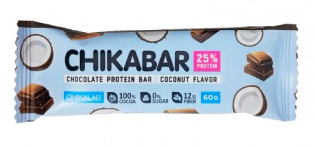 В батончиках нет сахара, искусственных консервантов и ГМО. Для нежной кремовой начинки батончика Chikalab используется молочный шоколад на основе клетчатки с добавлением сухого обезжиренного молока. Кокосовая стружка и дробленый фундук наполняют рассыпчатую текстуру батончика, питают и насыщают организм необходимыми жирными кислотами и витаминами.