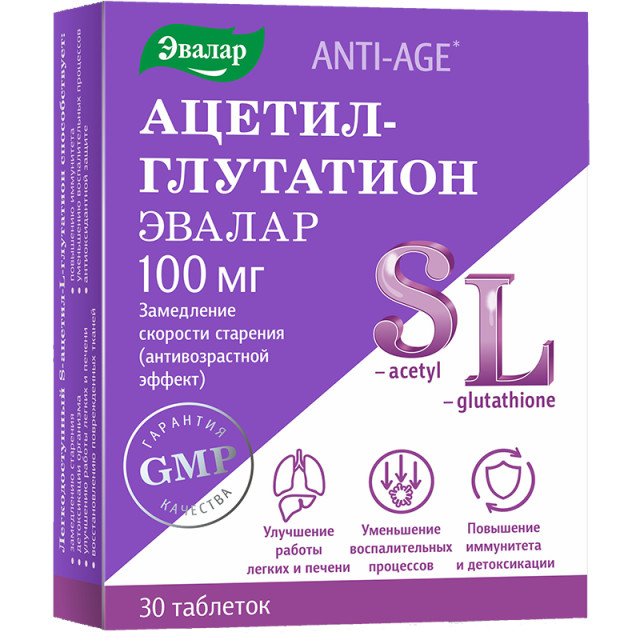 Ацетил-глутатион Анти-Эйдж таблетки Эвалар №30