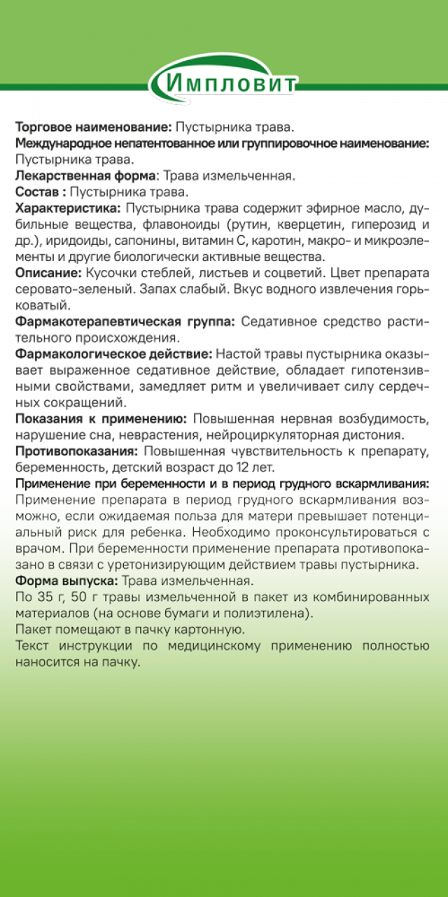 Пустырник трава 50г Импловит