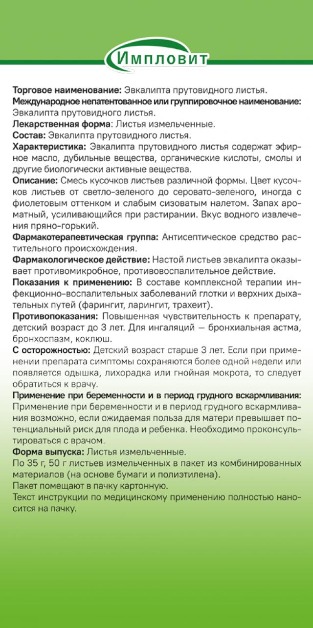 Эвкалипт прутовидный листья 50г Импловит