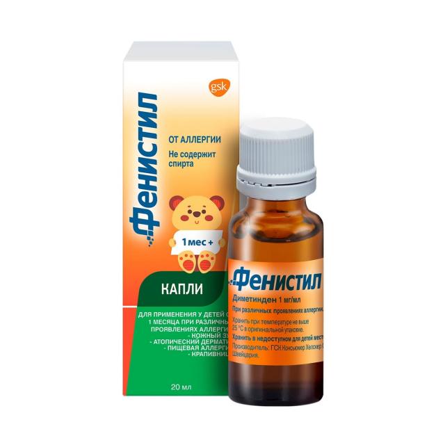 Фенистил капли для приема внутрь - антигистаминное пероральное средство, облегчает симптомы кожной сыпи, уменьшает зуд и раздражение при укусах насекомых и кожно-аллергических реакциях.* После попадания в организм капли начинают работать уже через 30 минут после применения.* Преимущества* Фенистил капель: