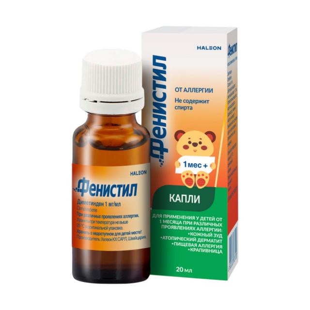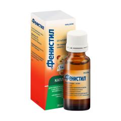 Фенистил капли для приема внутрь - антигистаминное пероральное средство, облегчает симптомы кожной сыпи, уменьшает зуд и раздражение при укусах насекомых и кожно-аллергических реакциях.* После попадания в организм капли начинают работать уже через 30 минут после применения.* Преимущества* Фенистил капель: