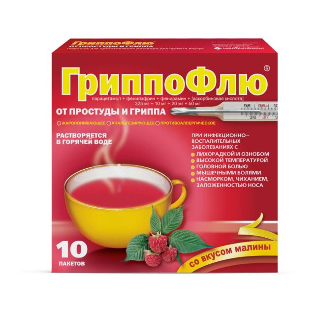 Гриппофлю порошок для приготовления раствора внутрь 13г Малина №10