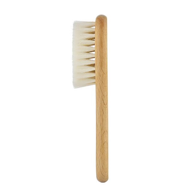 Деревянная расческа-щетка с мягким ворсом из натуральной овечьей шерсти предназначена для бережного ухода за волосами и кожей головы малыша с первых дней жизни. Мягкая пушистая щетка имеет удобную эргономичную ручку, улучшает кровообращение кожи головы, не царапая её. Нежный массаж расслабляет и успокаивает перед сном, а стимуляция волосяных луковиц ускоряет рост первых волос малыша. Расческа изготовлена из натурального бука. Этот экологически чистый материал обладает высокой прочностью и безопасен для малыша, поэтому расчески можно грызть в период прорезывания зубов. Подарите своему малышу заботу и комфорт с качественной расческой-щеткой от ROXY-KIDS! Материалы: натуральный бук, овечья шерсть.