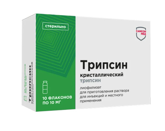 Трипсин кристаллический порошок для инъекций 10мг №10